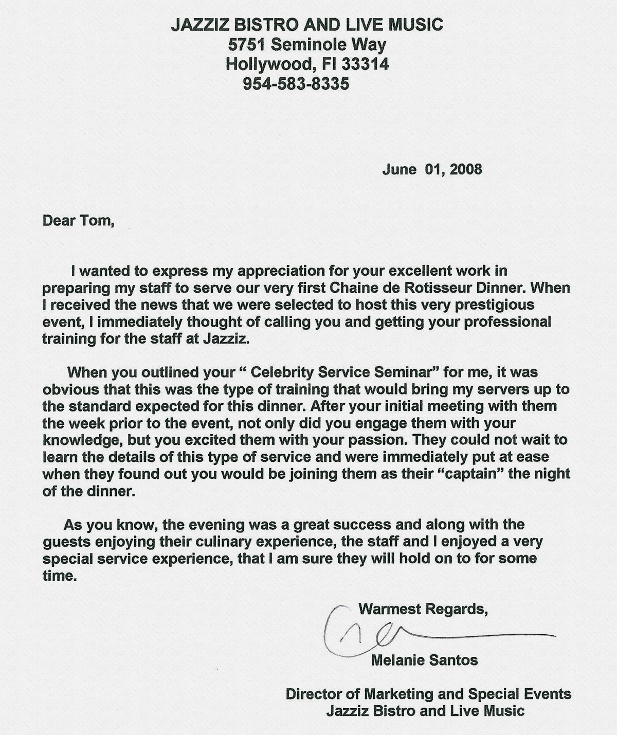 Jazziz Bistro, an ultra-modern restaurant / nightclub concept. Tom was hired to deliver his Celebrity Service Seminar, but stayed on to work as the Captain for a high profile party for Chaine des Rotisseurs event the next night. Recommendation